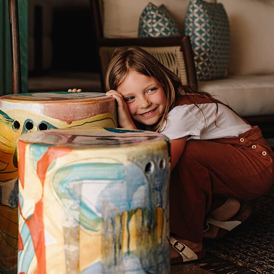 Erwecken Sie Ihre Kreativität mit interaktiven Projekten und Workshops in unserem Kunststudio. Neben den regelmäßigen Kursen unseres Hauskünstlers veranstalten wir besondere Events mit internationalen Gästen und einheimischen Kunsthandwerkern. Beobachten Sie unsere Gäste bei der Arbeit und der Erschaffung neuer Kunstwerke, inspiriert von unserer Insel und ihrem Ethos der Freude, der Natur und der Nachhaltigkeit.