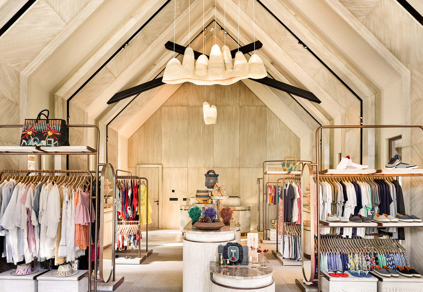 @(titleX)>Located inside the JOALI boutique, Doug Johnston’s organic-shaped light shades reflect the textures and waves of the island. Made from coiled rope, stitched using industrial sewing machines, they demonstrate skills gleaned in masonry construction,3D printing, basketry and cordage.